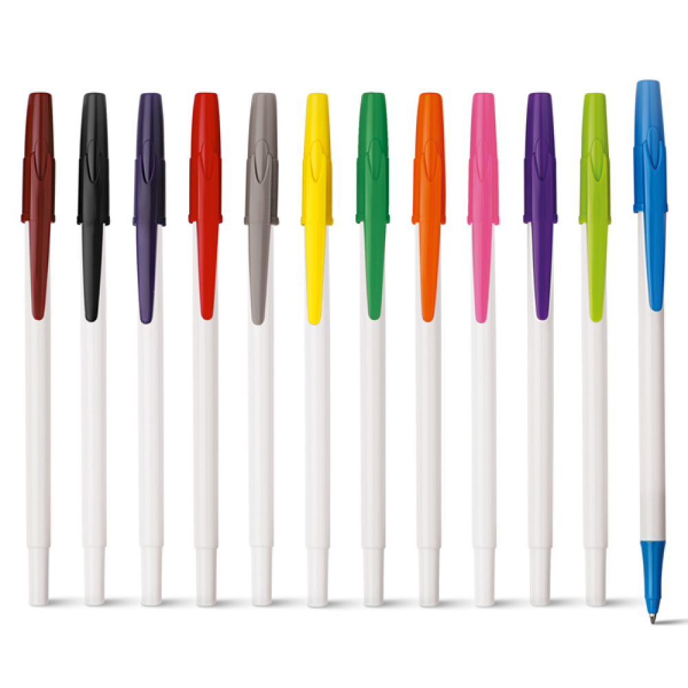 Esferográfica. PP. Acabamento brilhante. 1,5km de escrita.